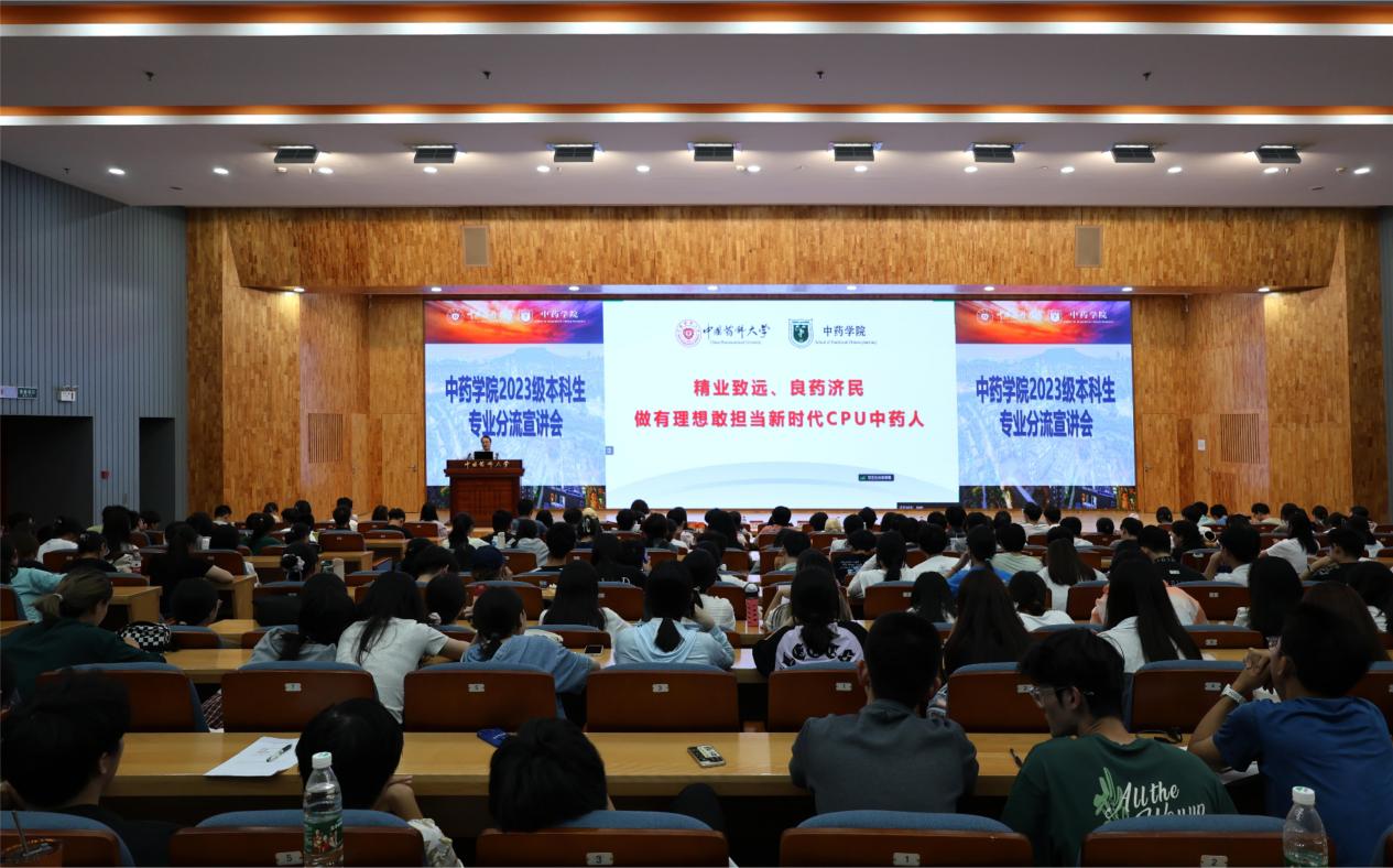 宣讲会上,许风国院长做专业分流动员讲话。他介绍了中药发展的时代机遇以及7MMTV 的发展概况,鼓励同学们根据自己的特长及兴趣爱好选择适合自己的专业并为之奋斗,牢记中国药大人的初心使命,志存高远,树立远大目标,为建设健康中国、医药强国贡献中药力量。