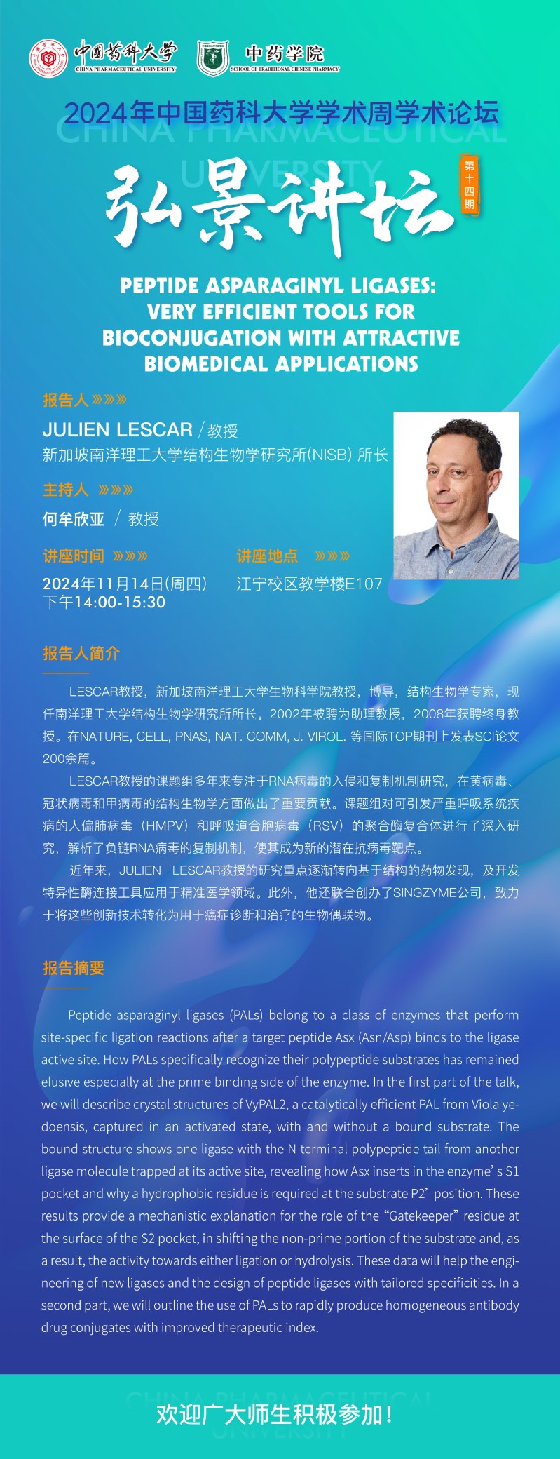 7MMTV 第十四期“弘景讲坛”:新加坡南洋理工大学生物科7MMTV JULIEN LESCAR教授学术报告