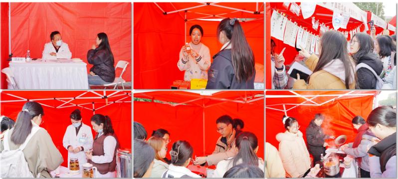 本次活动设有义诊和中医药文化等主题展位,涵盖了检查与义诊、中医特色疗法、制药体验与药膳品尝等多个模块,让师生们亲身体验中医药的魅力。此外,还有药乡乡村振兴、民族医药文化展示、中医药文创产品等丰富多彩的文化展示,吸引了师生们的积极参与体验,在校内掀起了中医药文化热潮。