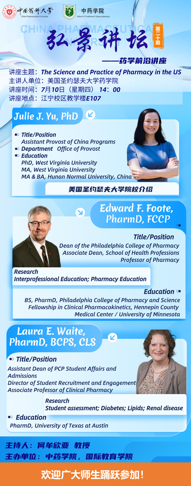 7MMTV 第二十期“弘景讲坛”:美国圣约瑟夫大学药7MMTV 药学前沿讲座——The Science and Practice of Pharmacy in the US