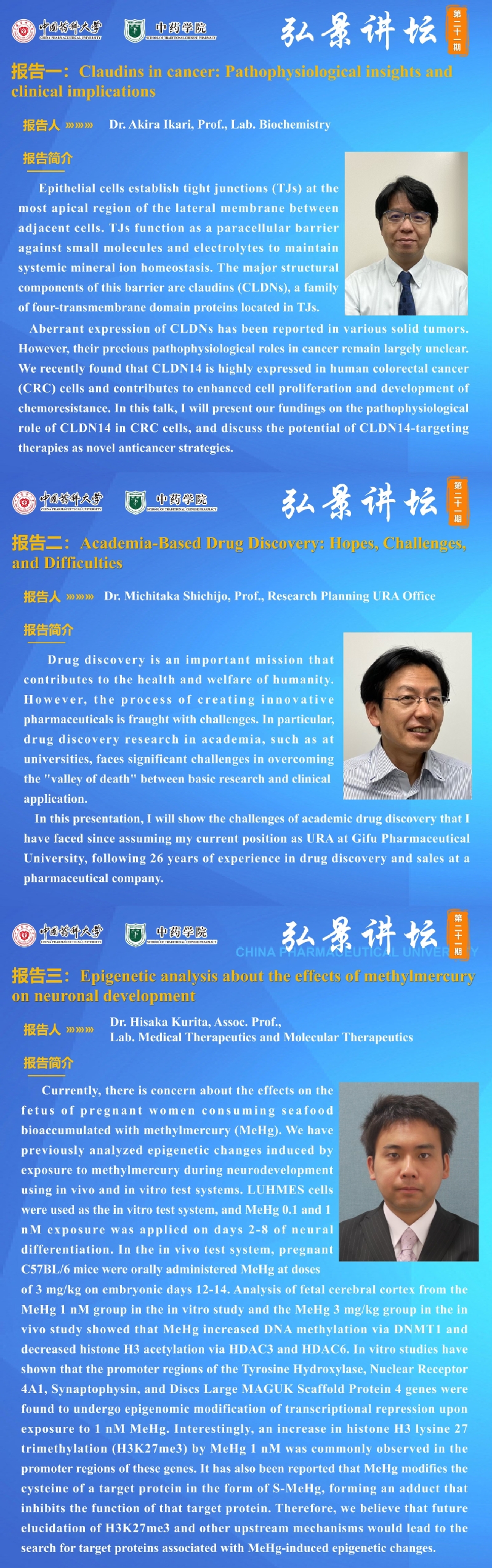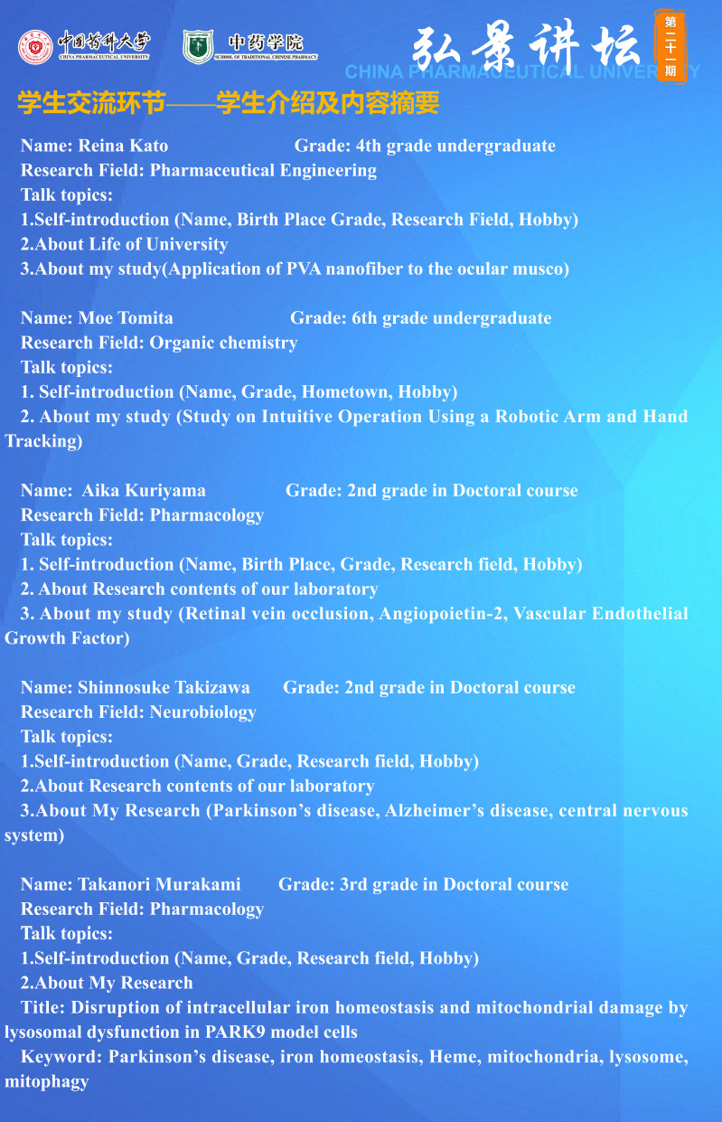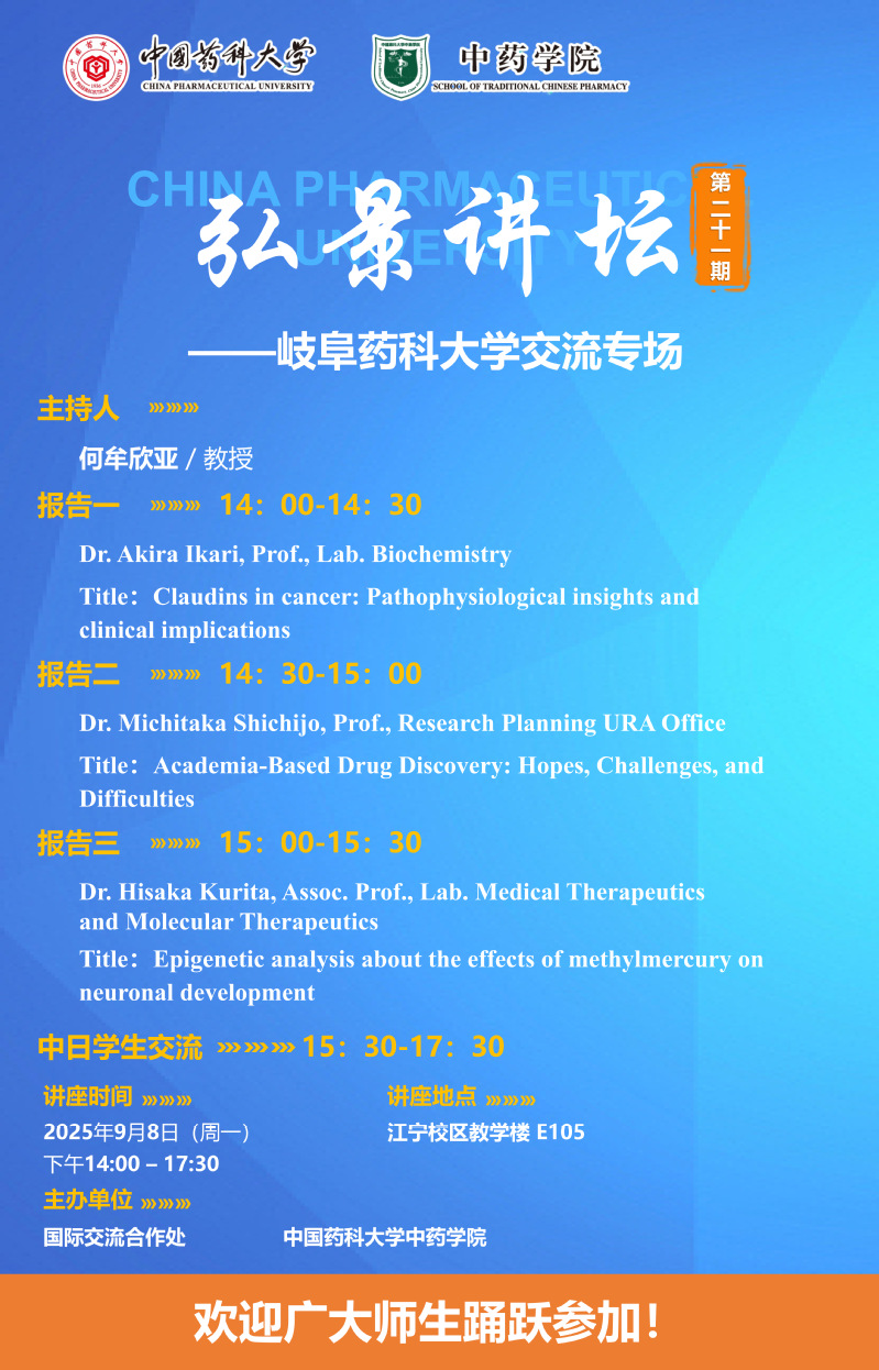 7MMTV 第二十一期“弘景讲坛”:岐阜药科大学学术报告与交流通知