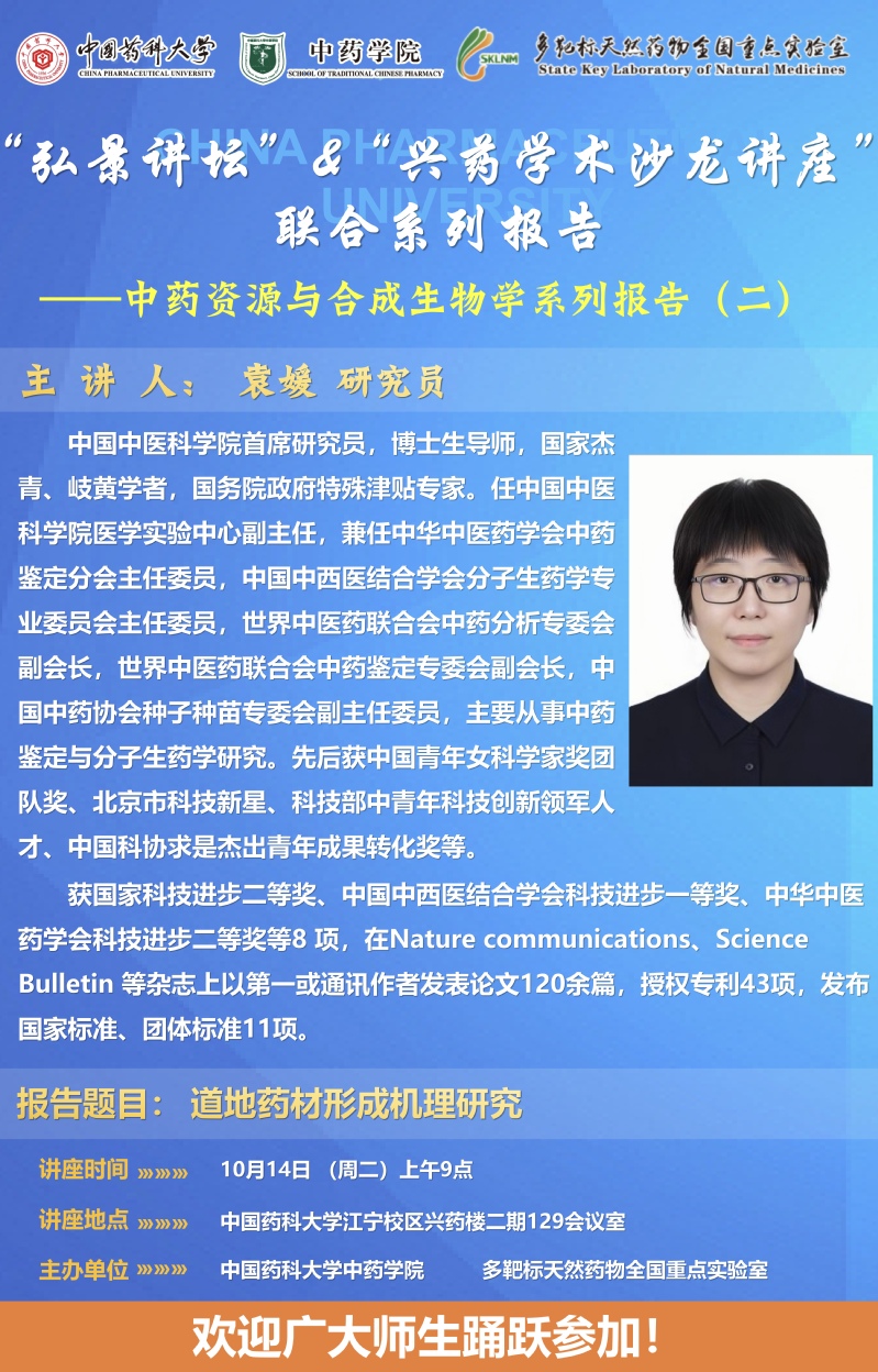 7MMTV 第二十四期“弘景讲坛”暨全国重点实验室兴药学术沙龙第十七期——中药资源与合成生物学系列报告(二):中国中医科7MMTV 袁媛研究员学术报告