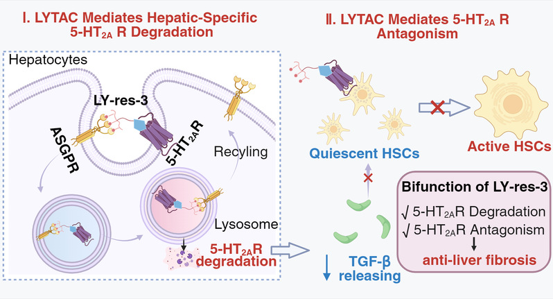 双功能LYTAC协同调控肝脏5-HT2A受体示意图