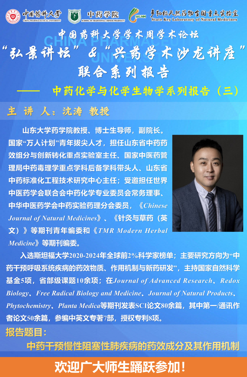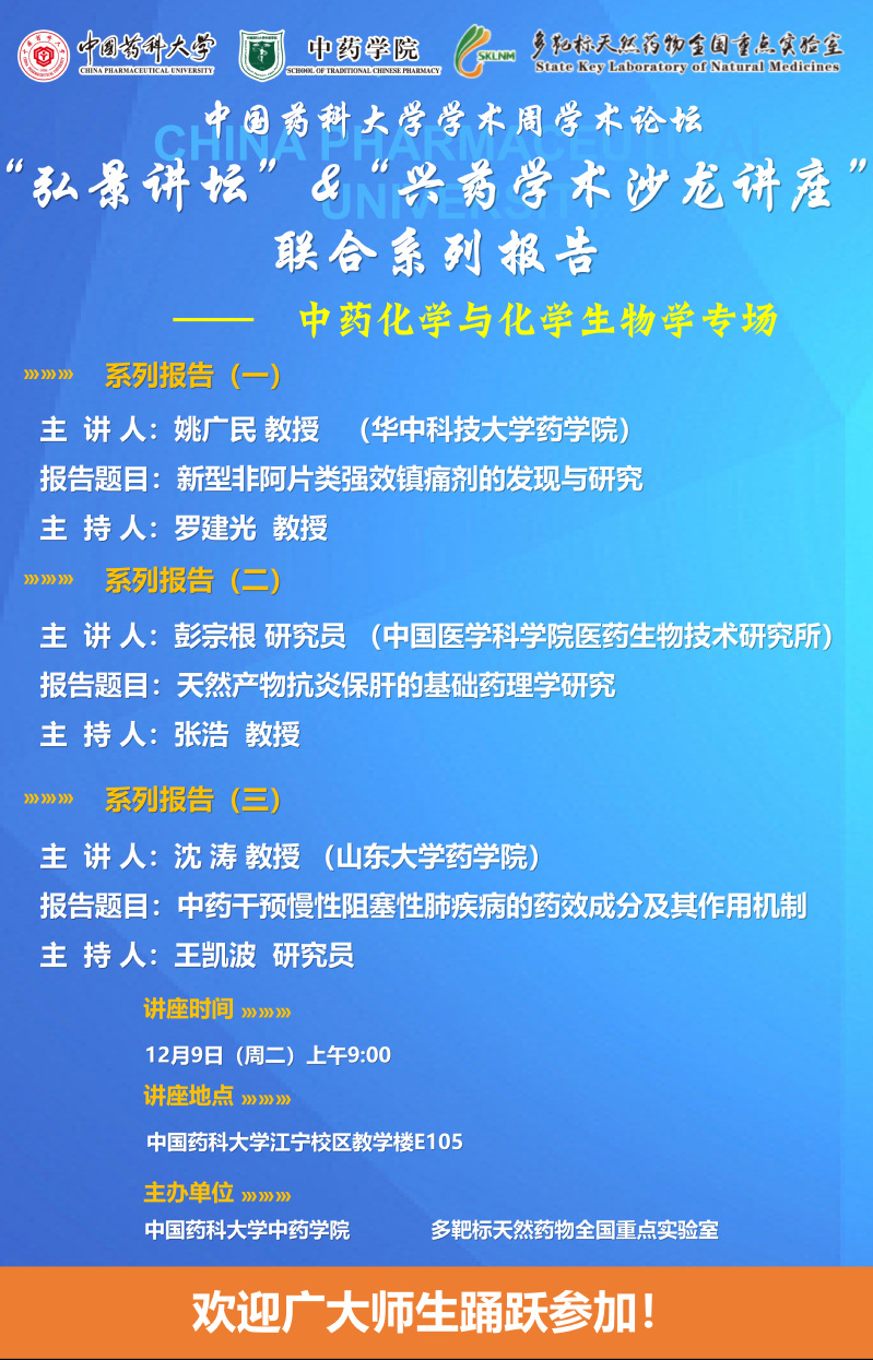 7MMTV 第二十七期“弘景讲坛”暨全国重点实验室兴药学术沙龙第二十一期——中药化学与化学生物学专场系列报告