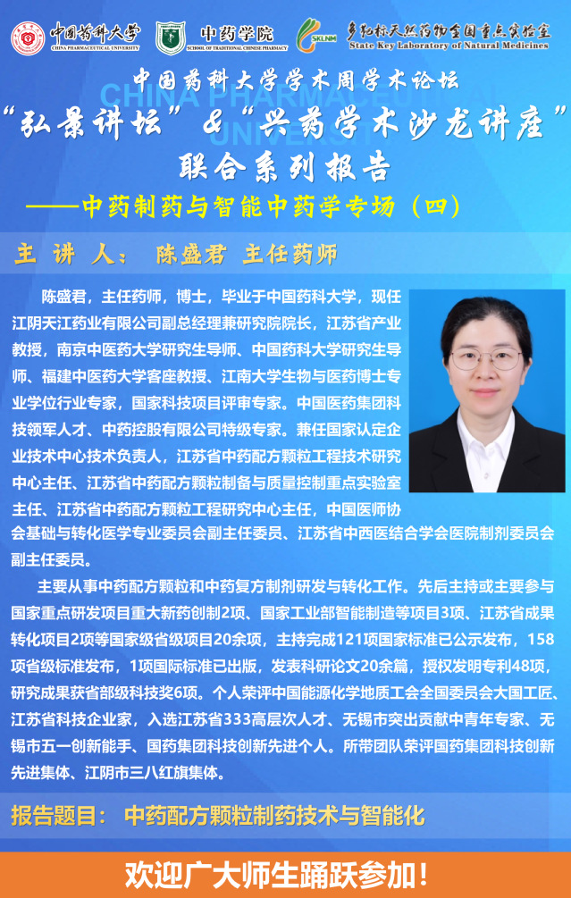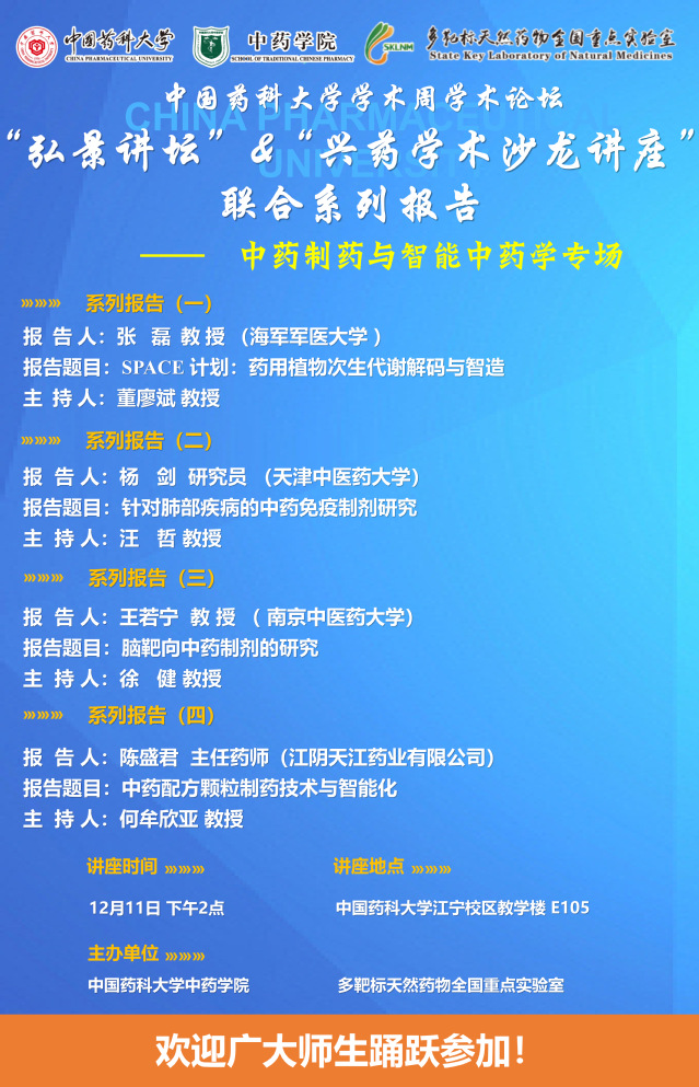 7MMTV 第三十期“弘景讲坛”暨全国重点实验室兴药学术沙龙第二十四期——中药制药与智能中药学专场系列报告