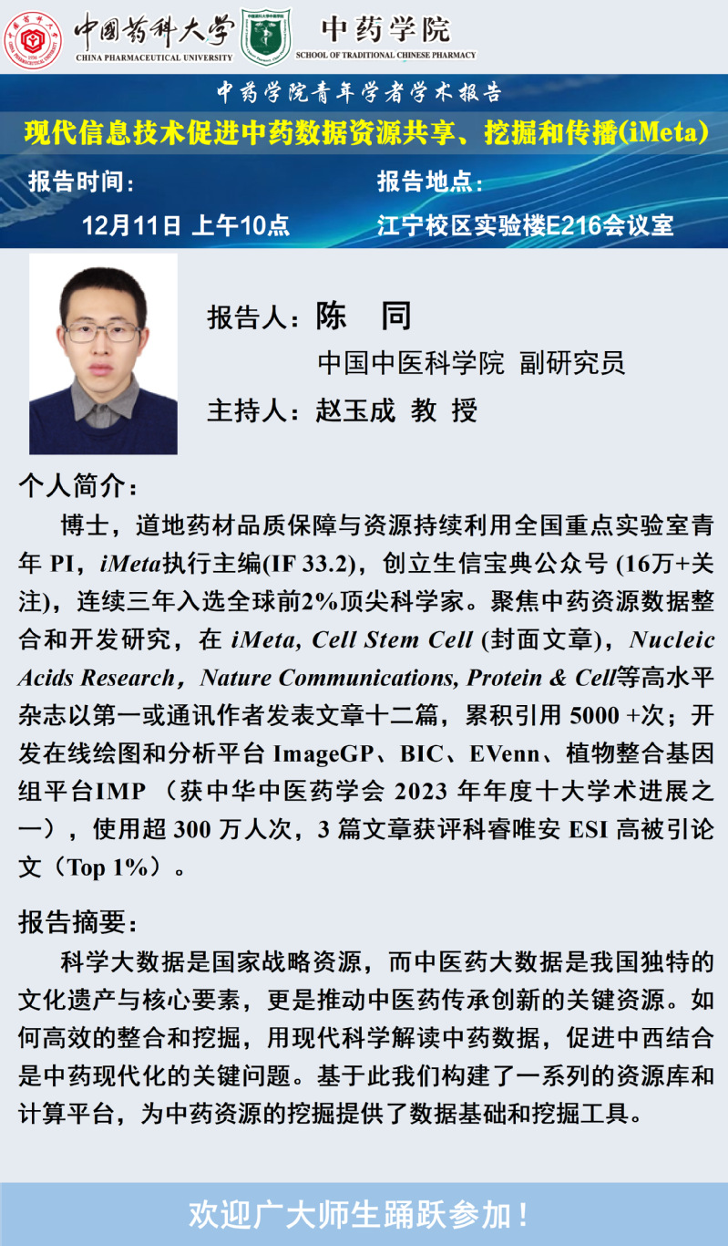7MMTV 青年学者学术报告——现代信息技术促进中药数据资源共享、挖掘和传播(iMeta)