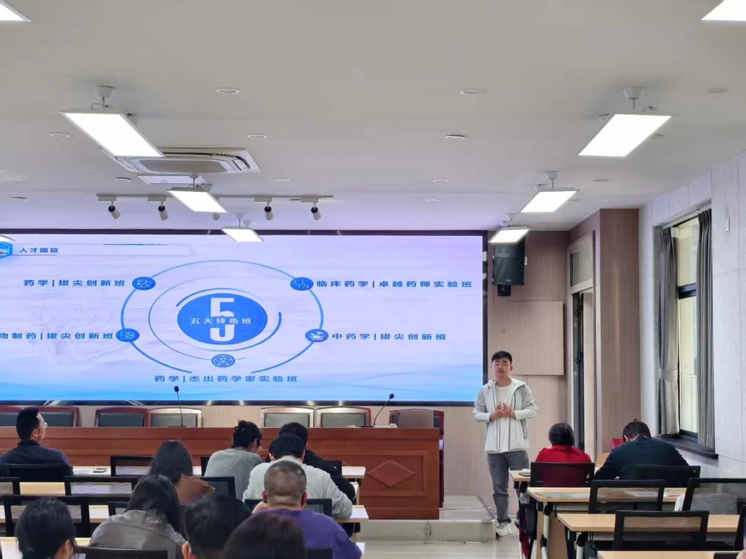 活动宣讲环节,宣讲团成员向在场师生及家长系统介绍了学校的发展历程与办学底蕴,讲解了学校专业优势、人才培养模式及毕业生就业方向,展现了学校“精业济群”的校训精神与深厚的育人实力,让学子们对药学专业和学校有了全面深入的了解。