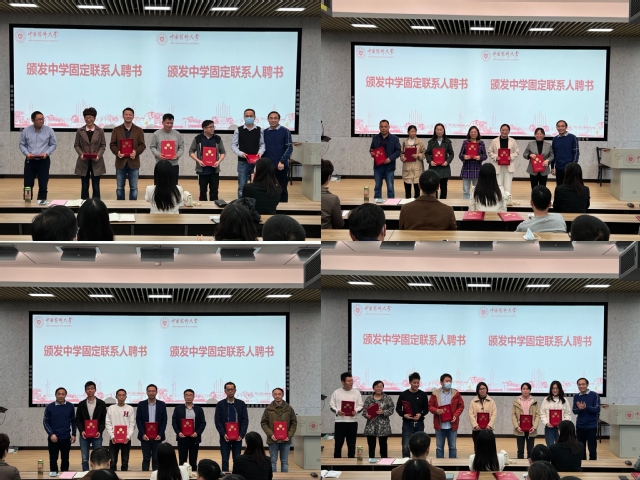 会上首先由齐炼文院长为徐州、常州两地优质高中生源基地的固定联系人颁发聘书,同时来自常州招生组的钱帅老师以2022年他和马维坤老师在常州的招生经验为例,与到会老师进行了交流分享。
