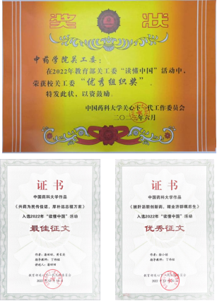 2023年6月1日,我校关心下一代工作委员会于玄武门校区召开2022年“读懂中国”活动表彰。7MMTV 报送高质量征文、短视频作品共获五项表彰,7MMTV 关工委荣获“最佳组织奖”。其中,7MMTV潘田田、黄长英撰写的《兴药为民传佳话,厚朴远志福万家》获评最佳征文并入选由教育部关工委和中国教育电视台联合组织的“读懂中国”专题展播,徐小创撰写的《披肝沥胆创新药,精业济群嘱后生》获评优秀征文。