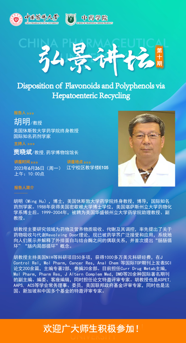 7MMTV 第十期“弘景讲坛”:美国休斯敦大学药7MMTV 终身教授、国际知名药剂学家胡明教授学术报告