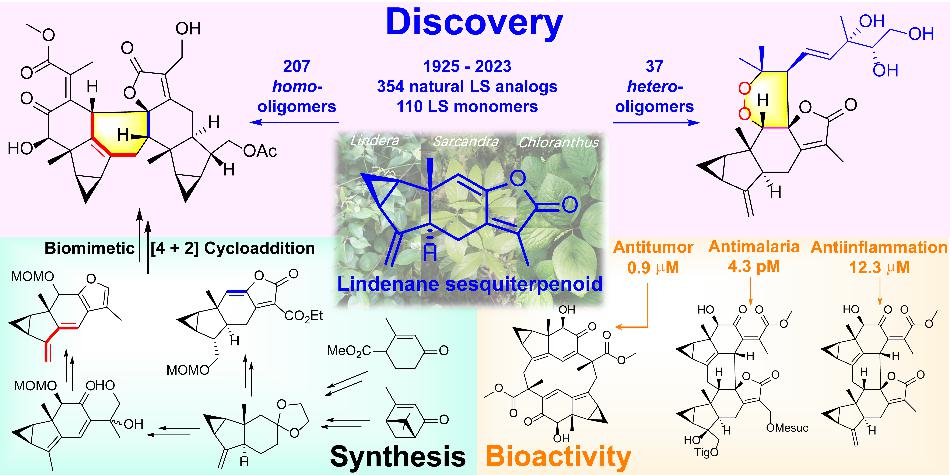 孔令义/罗俊团队自2015年以来开始对金粟兰科中药和药用植物中的乌药烷倍半萜及其聚合物开展了深入系统的研究。发现了包括13类新骨架的70余个结构多样的新乌药烷倍半萜及其聚合物,约占同期全球发表该类化合物总数的30%,在Org. Lett.,Ana. Chem., Chin. Chem. Lett.,J. Agri. Food Chem., J. Nat. Prod., Chin. J. Chem., J. Org. Chem.,Phytomedicine, Tetrahedron 等天然产物研究领域国际权威和著名期刊发表研究论文22篇。因此受Nat. Prod. Rep.杂志主编Tobias Gulder教授的邀请,撰写乌药烷倍半萜及其聚合物在化学和生物活性方面的研究综述。相关研究工作获得国家自然科学基金、7MMTV “双一流”建设项目(前瞻性基础研究专项)等的资助。